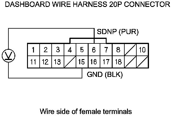9. Measure the voltage between dashboard wire harness 20P connector terminals No. 6 and No. 15.