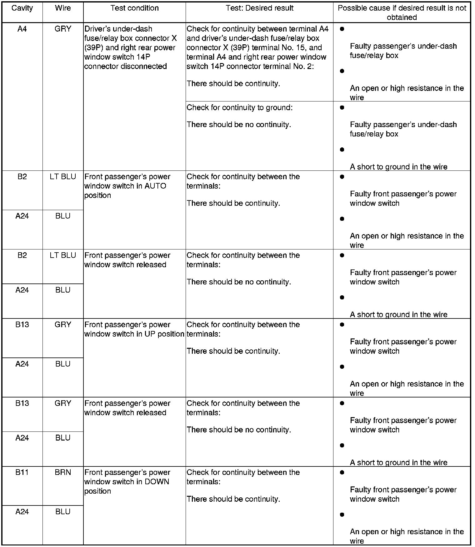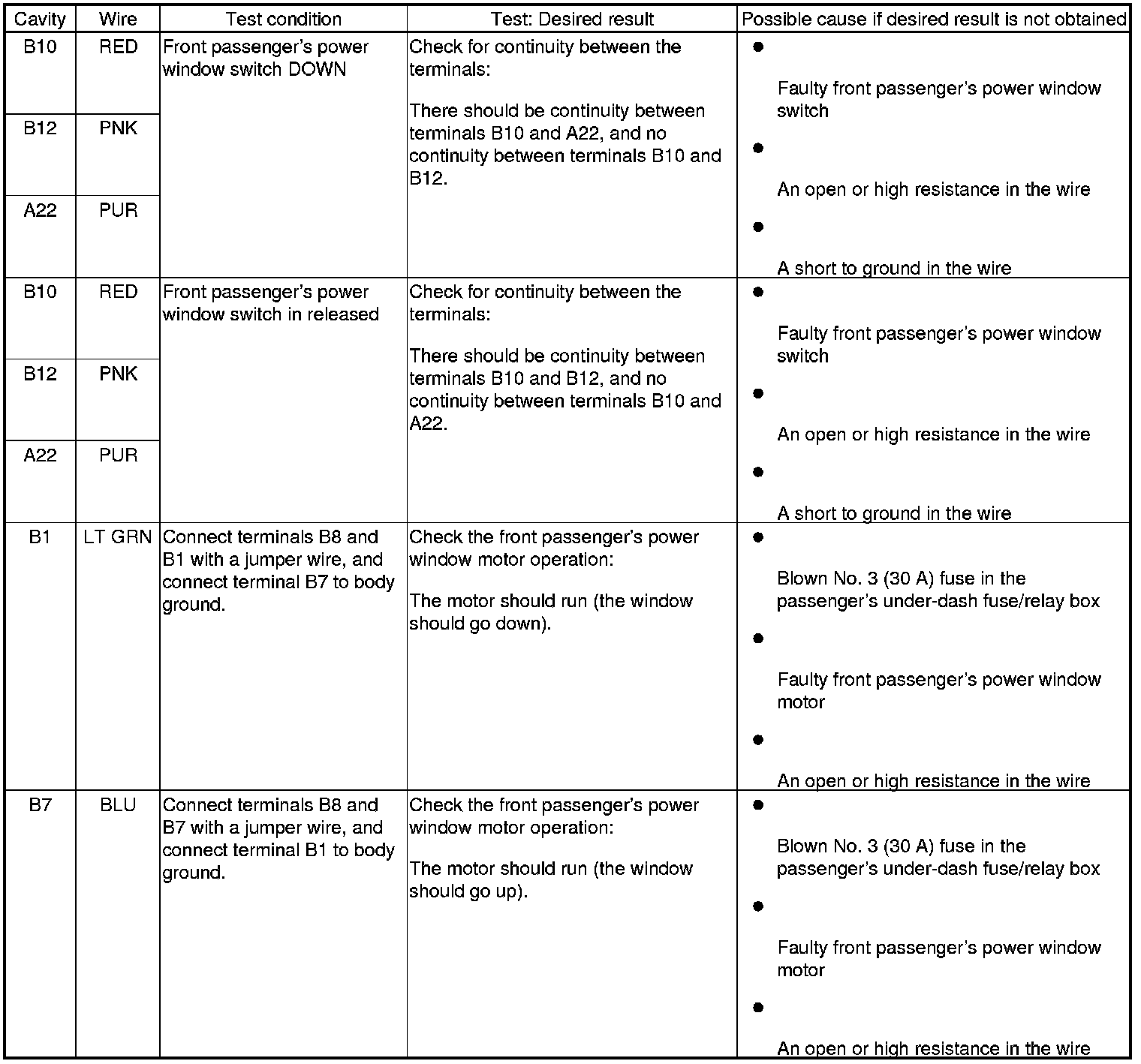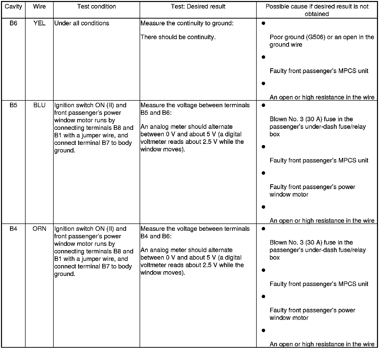 Power Windows (Front Passengers MPCS Unit) Input Test/Replacement