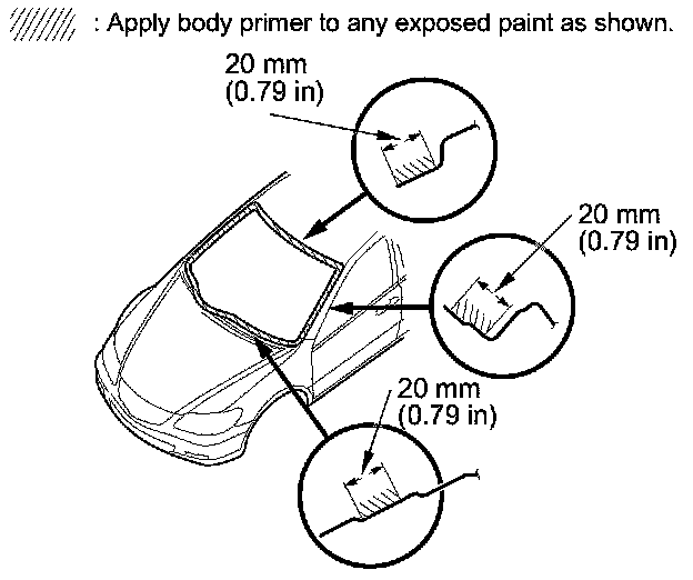 - Never touch the primed surfaces with your hands. If you do, the adhesive may not bond to the windshield properly, causing a leak after the windshield is installed.