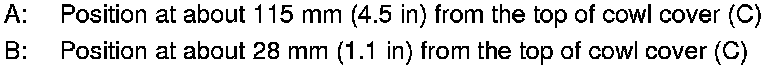 The Acura RL has two wiper arms stop positions. One is the normal position (summer position) and the other is the winter position. To adjust the wiper arms to the winter position, hold the middle of both wiper blades (A) at the same time. Pull on the arms, parallel to the windshield, until they lock in the higher position. To return to the normal position (summer position), push the same area of both arms in the opposite direction.