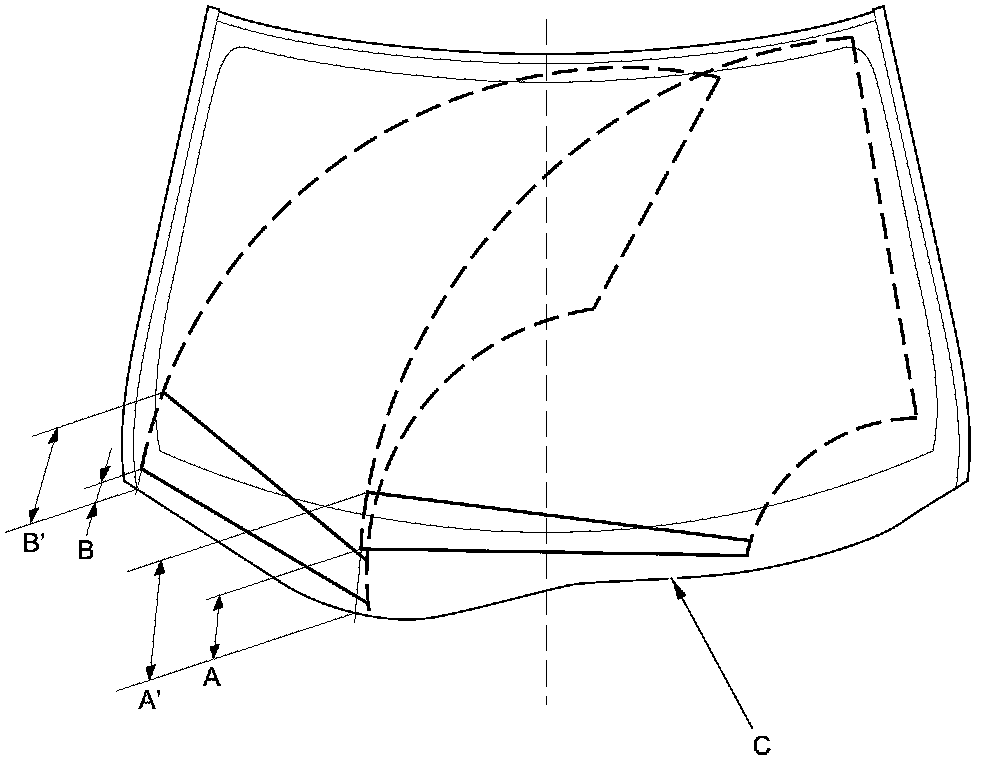 3. When you turn on the washers, confirm 50 % or more of the washer fluid lands within the spray area. If the spray area is not within the standard positions, adjust the nozzles.