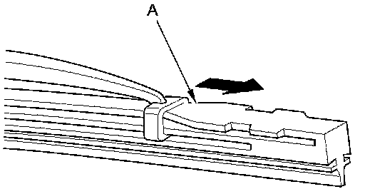 5. Examine the new wiper blades. If they have no plastic or metal reinforcement (A), remove the metal reinforcement strips from the old wiper blades, and install them in the slots along the edge of the new blade.