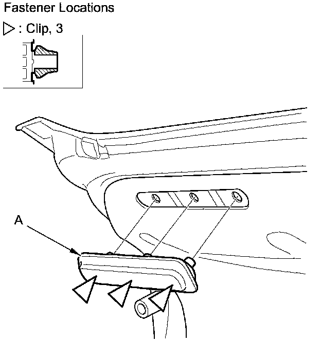 1. Remove the trunk lid cushion (A) by pulling it out to detach the clips.