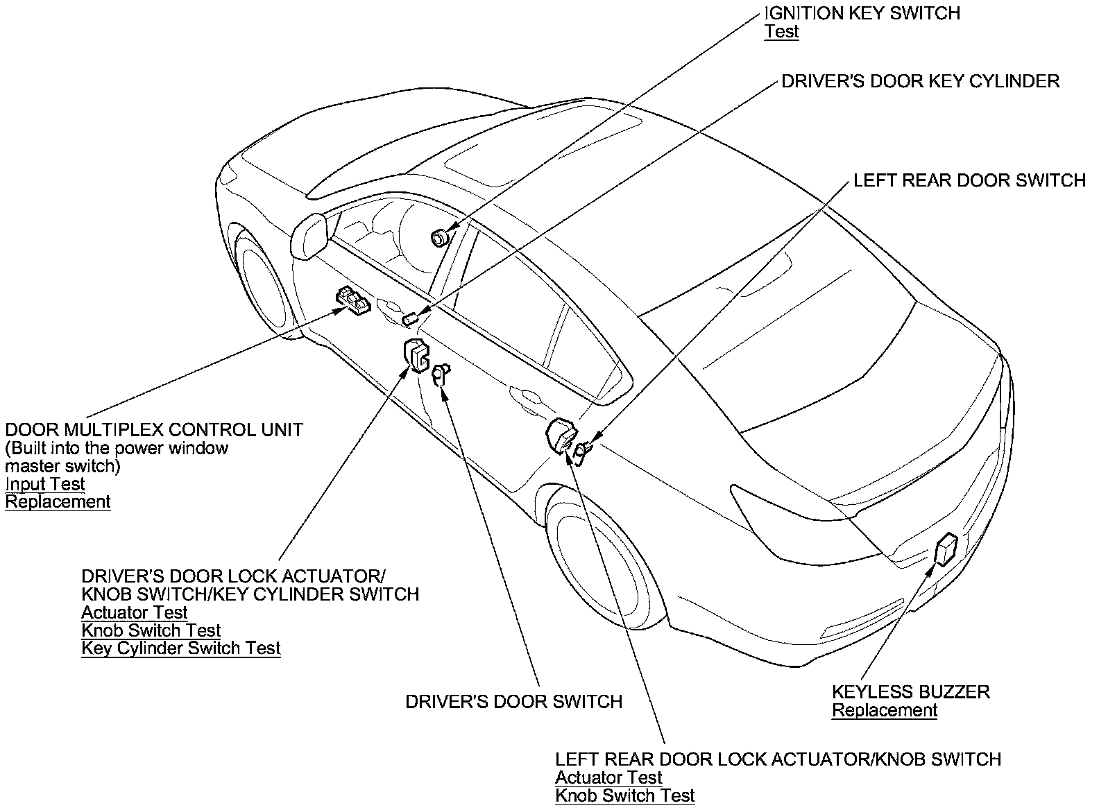 Keyless/Power Door Locks/Security System Component Location Index