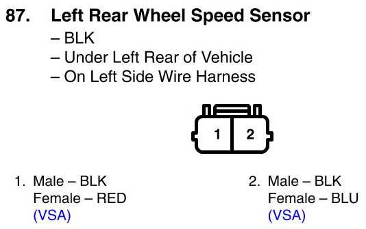 Left Rear Wheel Speed Sensor Connector View