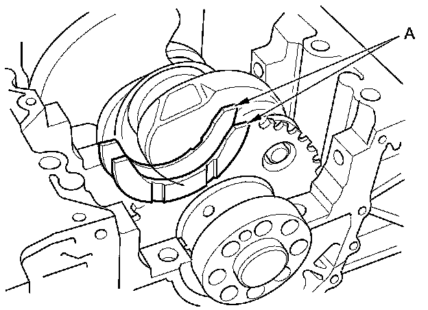 35. Apply a light coat of new engine oil to the lip of the crankshaft oil seal, and apply new engine oil to the new O-ring (A).