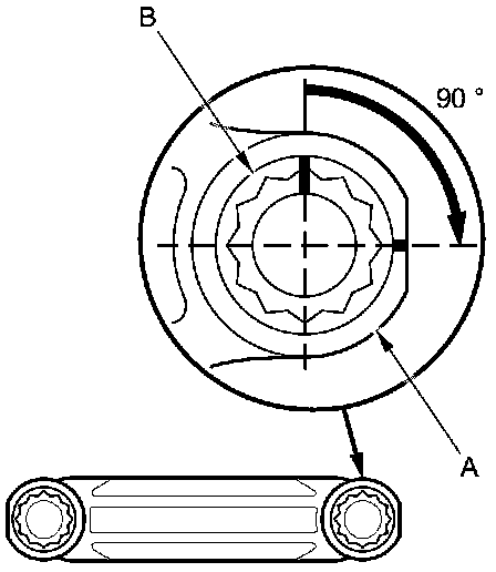 21. Mark the connecting rod (A) and the bolt head (B) as shown.