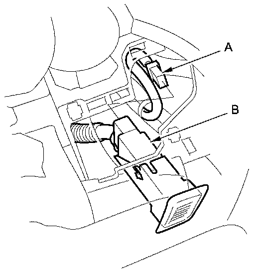 3. Disconnect the connector (A) from the humidity/in-car temperature sensor (B).