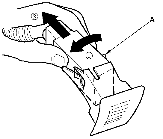 5. Pull sensor toward steering column to unlock right lock tab (A). Maintain the pressure with thumb to keep left tab unlocked while unhooking right lock tab then pull out the sensor.