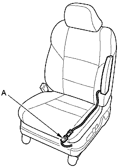 9. Disconnect the SRS floor wire harness 4P connectors (A) from the driver's and the front passenger's seat belt tensioner 4P connectors.