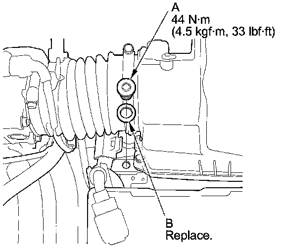 13. Install the filler plug (A) with a new sealing washer (B).