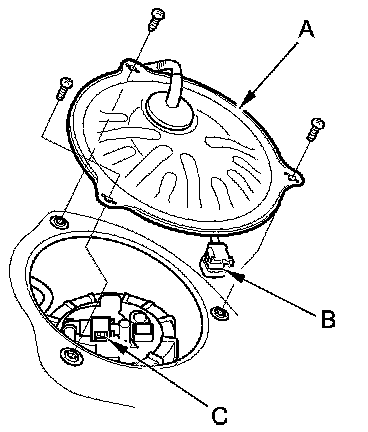 8. Disconnect the transfer tube (C), and remove the fuel tank unit.