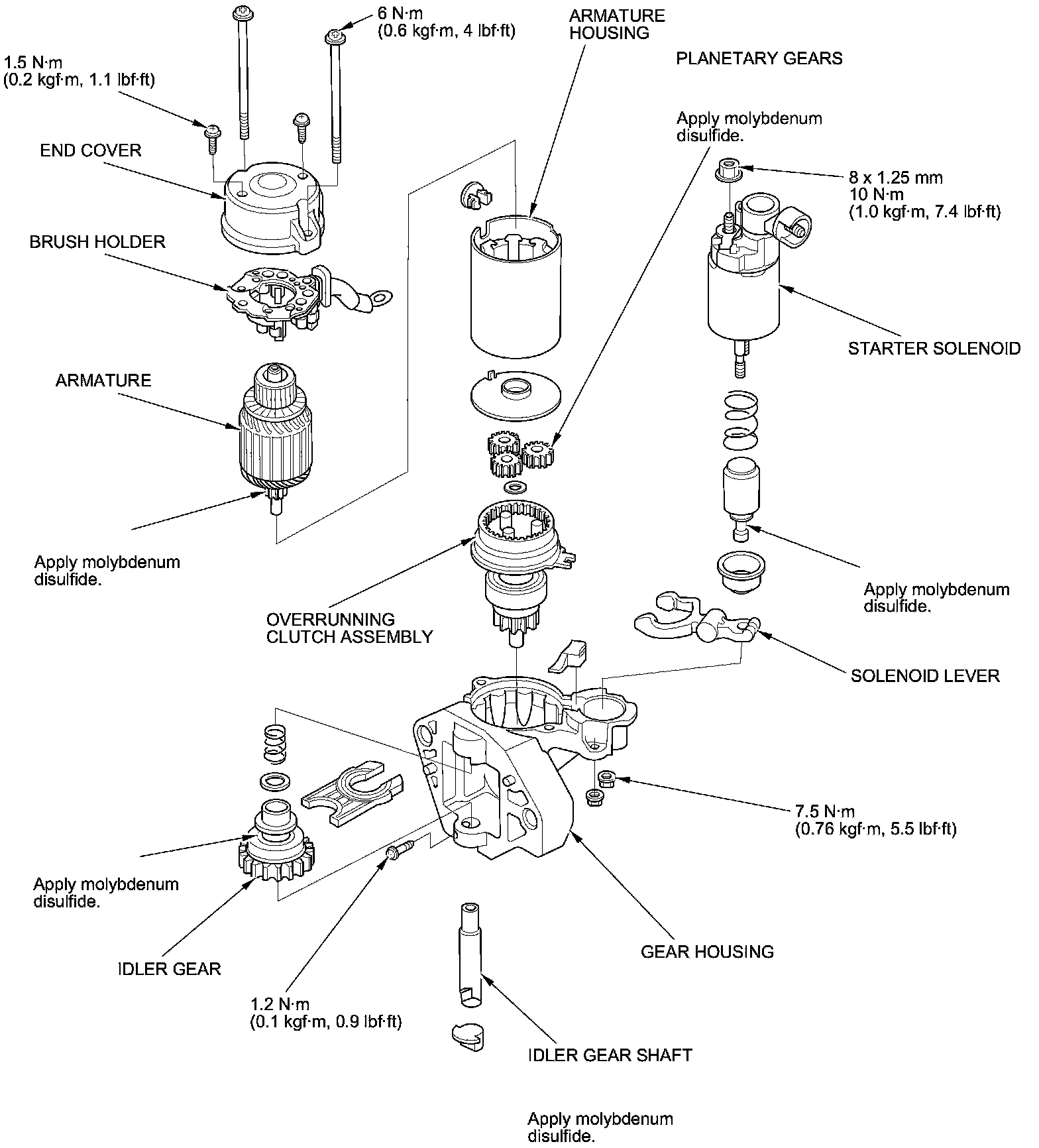 15. If the starter drive gear is worn or damaged, replace the overrunning clutch assembly; the gear is not available separately. Check the condition of the torque converter ring gear to see it if the starter drive gear teeth are damaged.