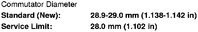 7. Check the commutator diameter with a digital caliper or dial type caliper. If the diameter is below the service limit, replace the armature.