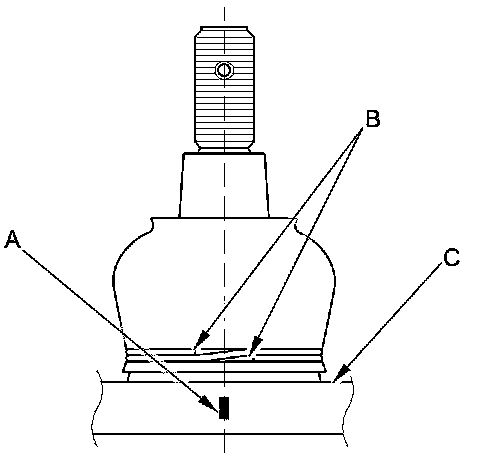 3. Paint a alignment mark (A) in the center between the both boot clip end faces (B) on the appropriate part (C).