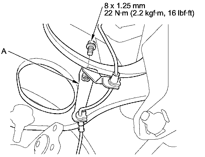 8. Remove the wheel speed sensor harness bracket (A).