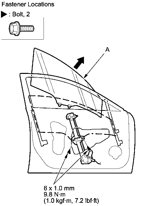 1. Remove the door panel Front Door Panel Removal/Installation.