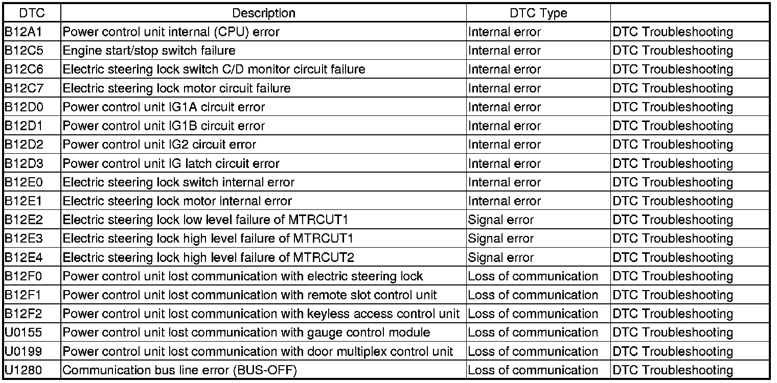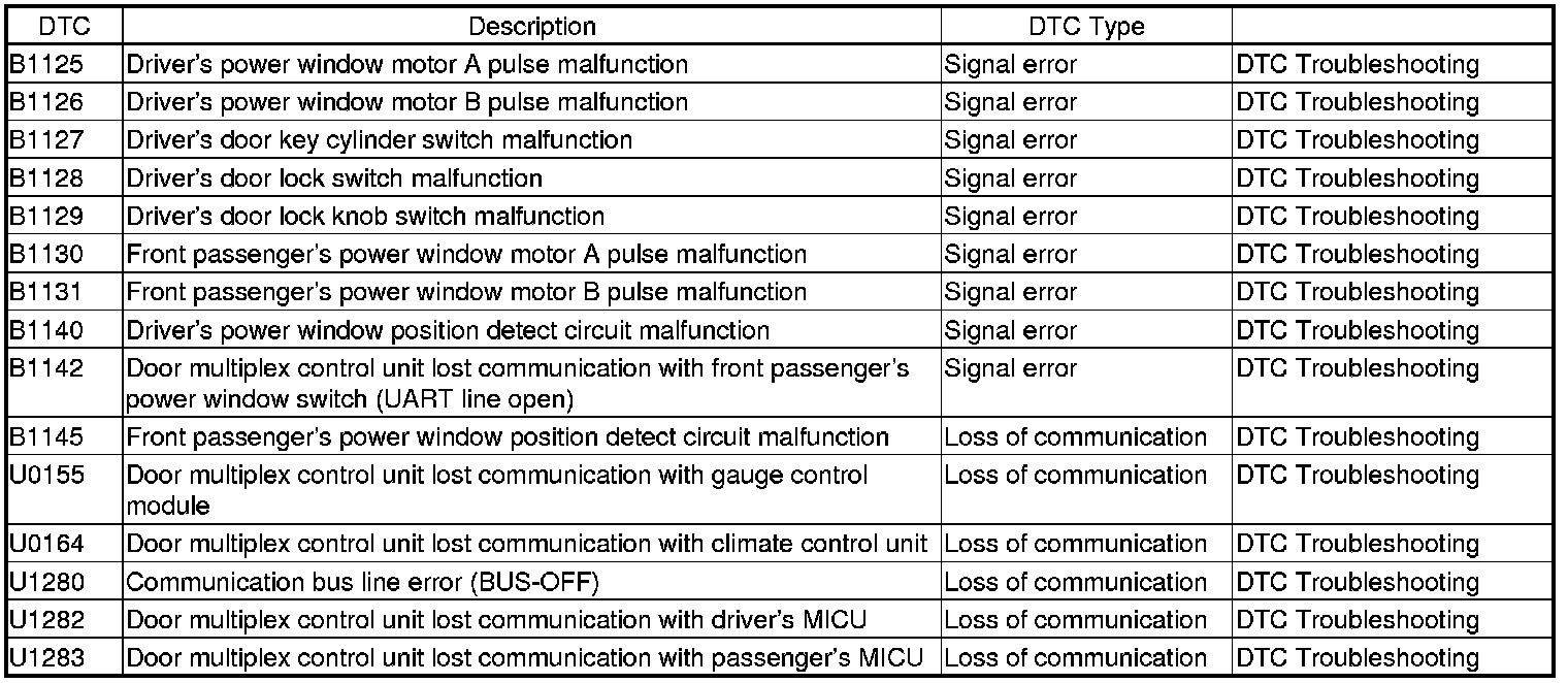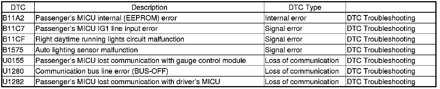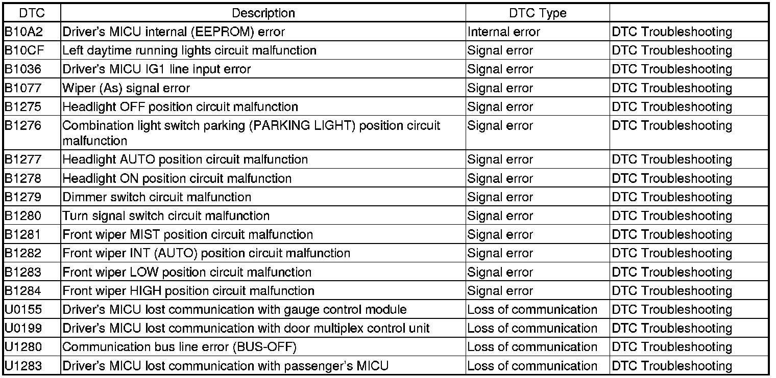 Multiplex Integrated Control System DTC Troubleshooting Index