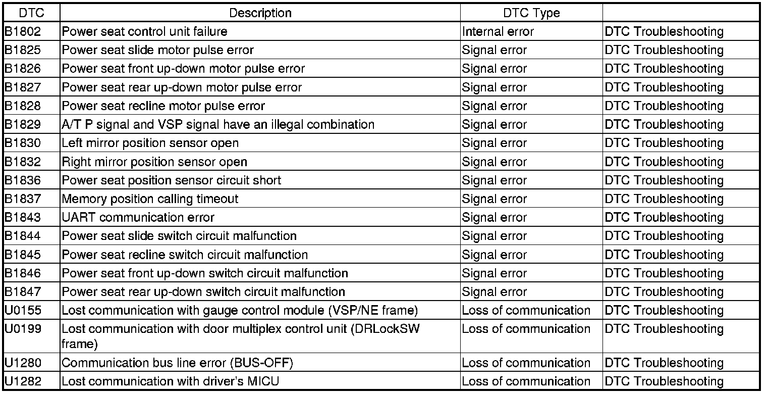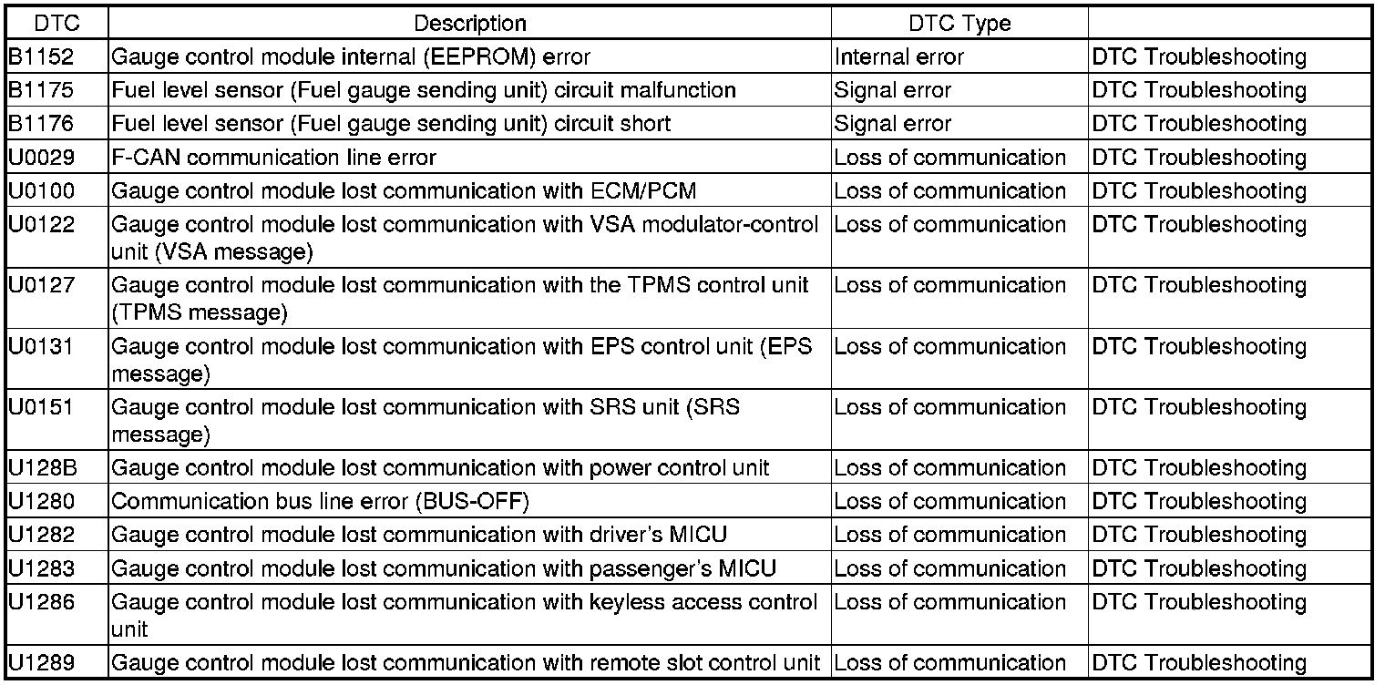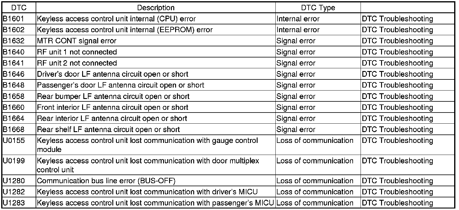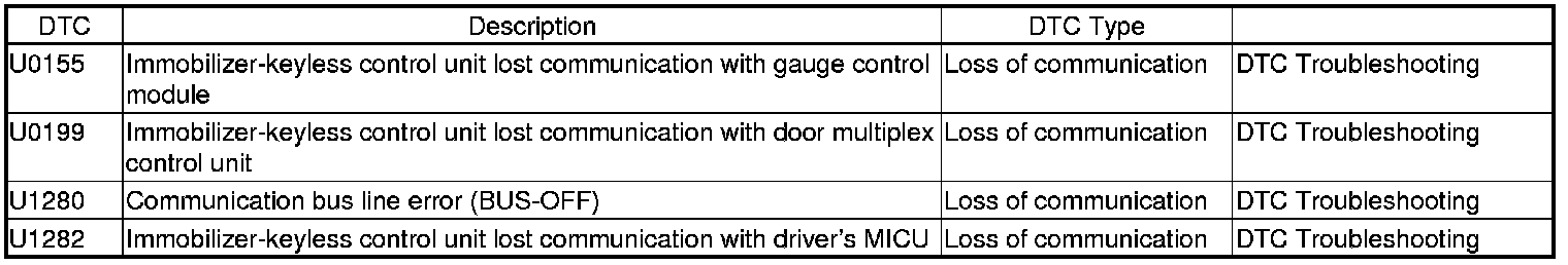 Multiplex Integrated Control System DTC Troubleshooting Index