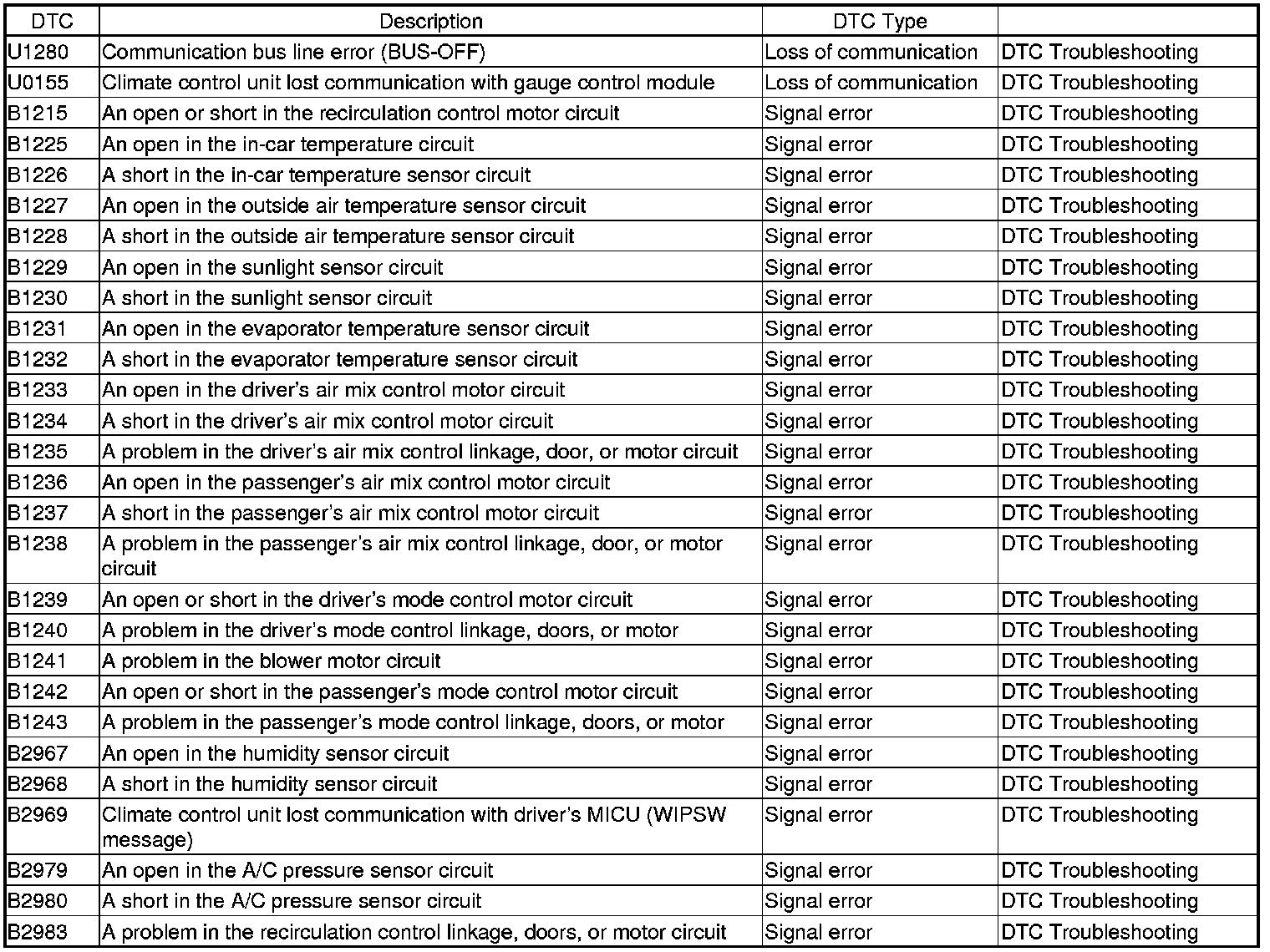 NOTE: Record all DTCs, and sort them by DTC type using the following DTC troubleshooting indexes, then troubleshoot the DTC(s) in this order: