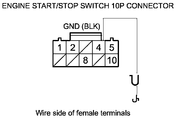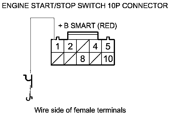 23. Measure the voltage between body ground and engine start/stop switch 10P connector terminal No. 1.