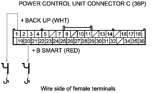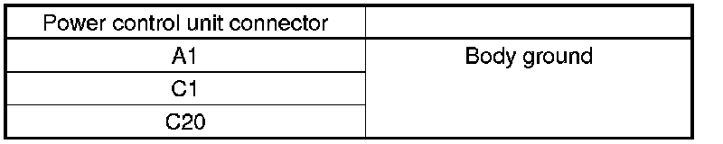 27. Check for continuity between body ground and power control unit connector C (36P) terminals No. 18 and No. 36 individually.