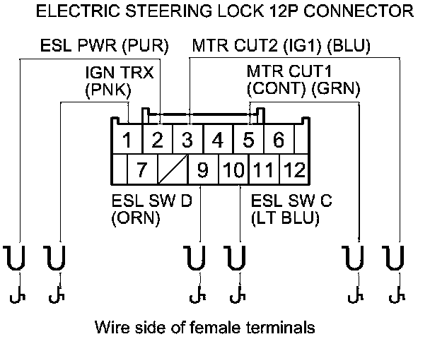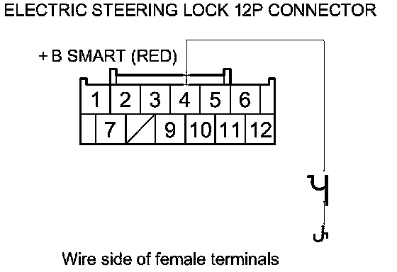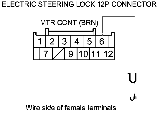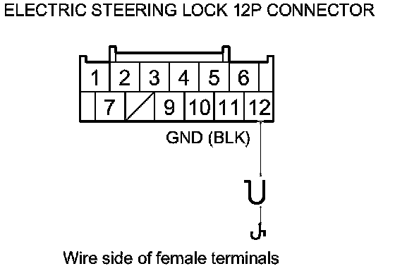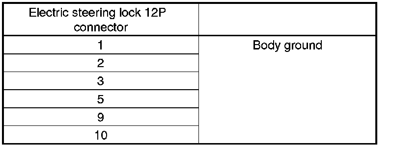 32. Check for continuity between body ground and electric steering lock 12P connector terminals as shown.