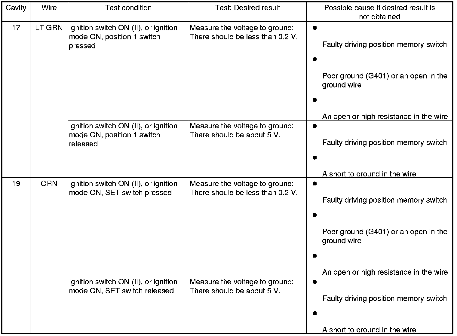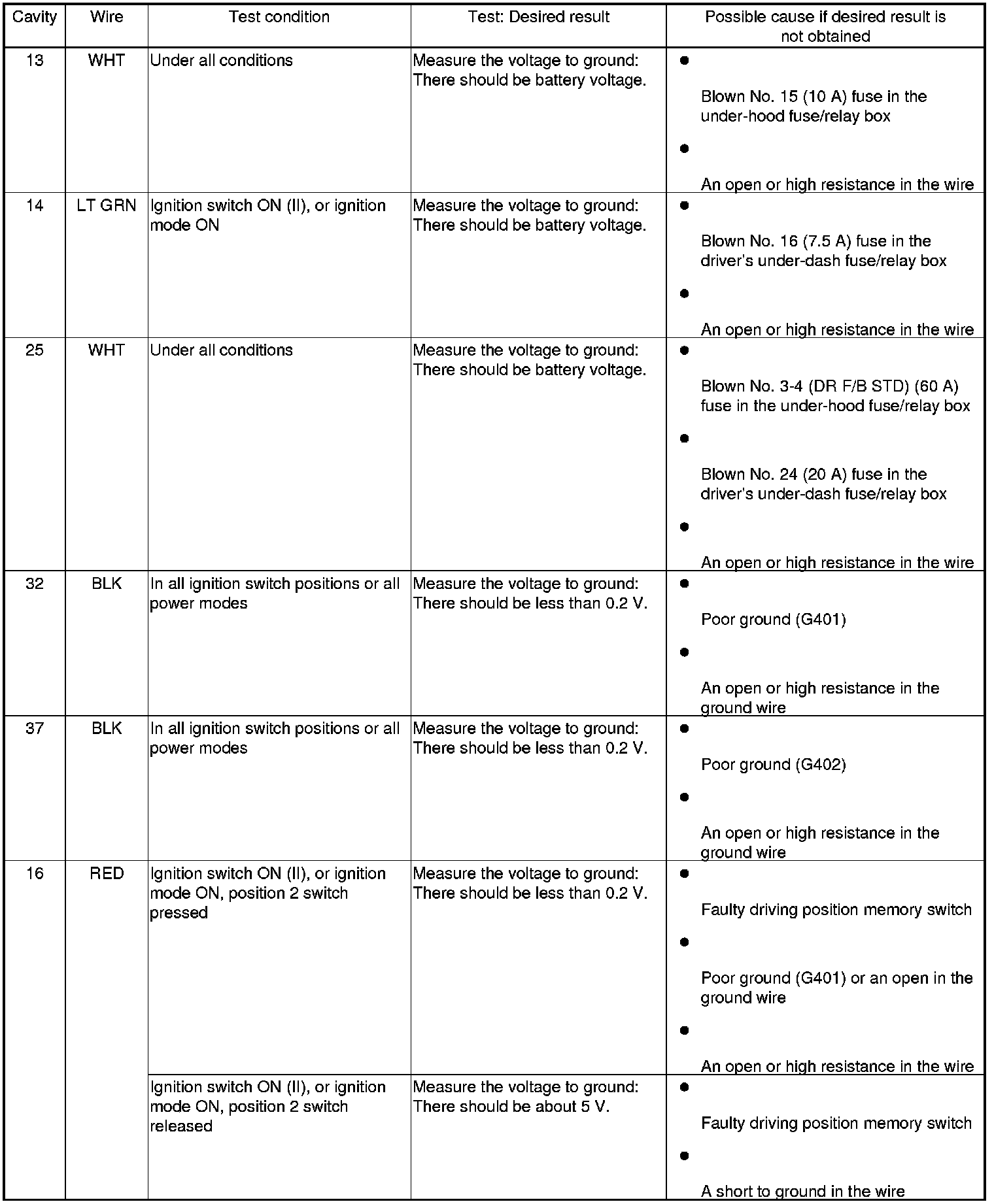 Driving Position Memory System (Door Multiplex Control Unit) Input Test