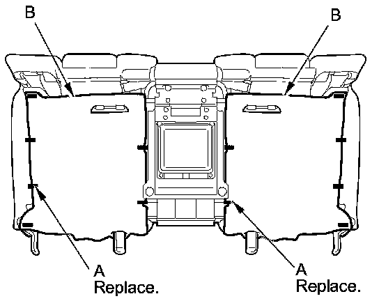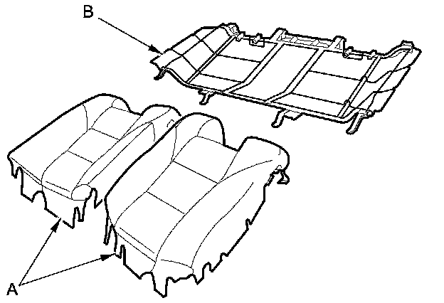 7. Separate the seat-back cover/pads (A) and the seat-back frame (B).