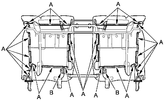 2. Release all the upholstery rings (A), then remove the insulators (B).