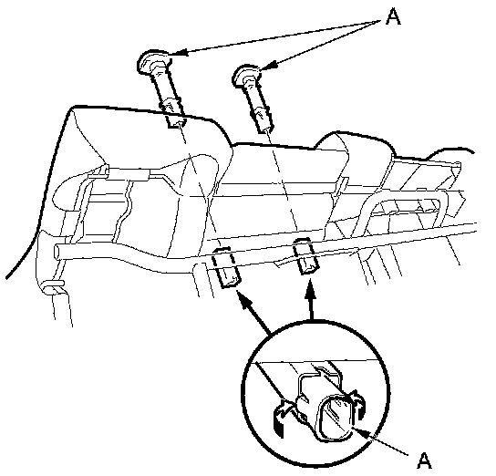 6. Pinch the tabs on the ends of the head restraint guides (A), and remove them from the seat-back.