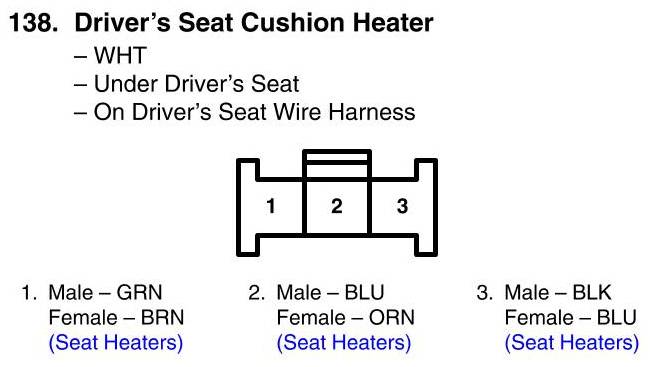 View 138 - Driver's Seat Cushion Heater Connector View