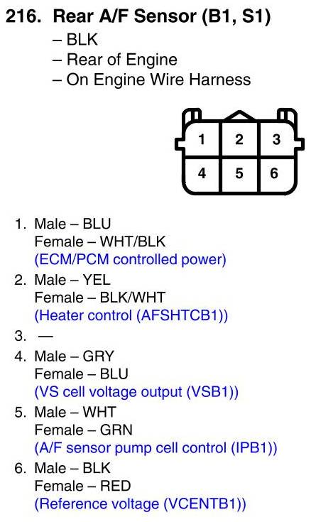 View 216 - Rear A/F Sensor (B1, S1) Connector View