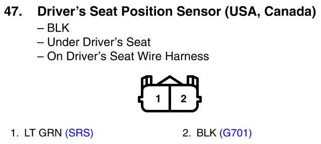 Driver's Seat Position Sensor Connector View (USA, Canada)