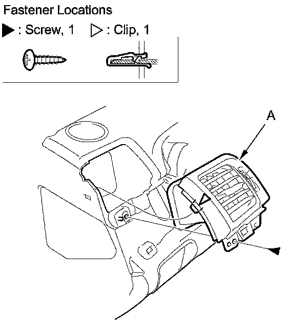 2. Remove the screw, and detach the clip, then remove the driver's side vent (A).
