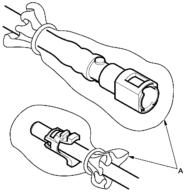 6. To prevent damage and keep foreign matter out, cover the disconnected connector and line ends with plastic bags (A).