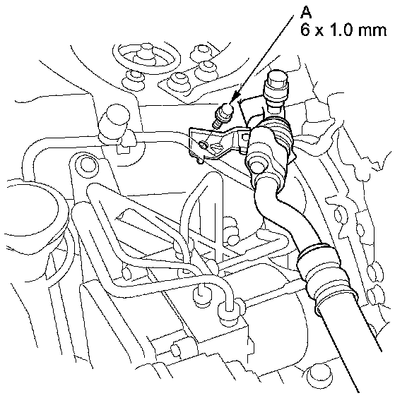 6. Install the suction line mounting bolt (A) to the bracket.