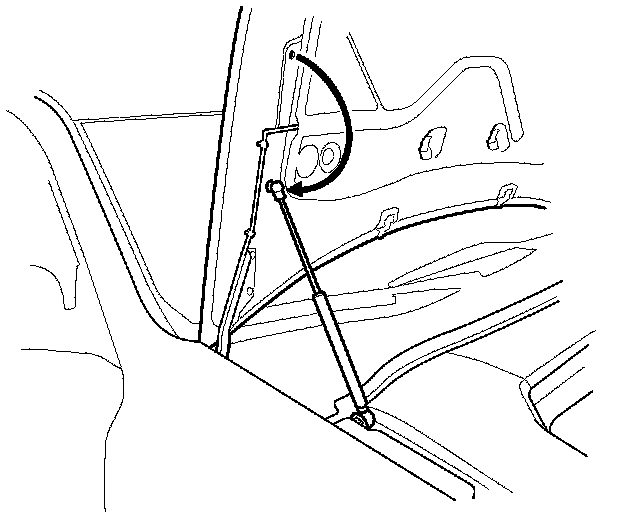NOTE: Do not attempt to close the hood with the support strut in the vertical position, as it will damage the support strut and hood.