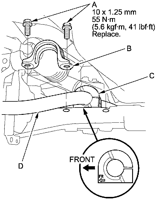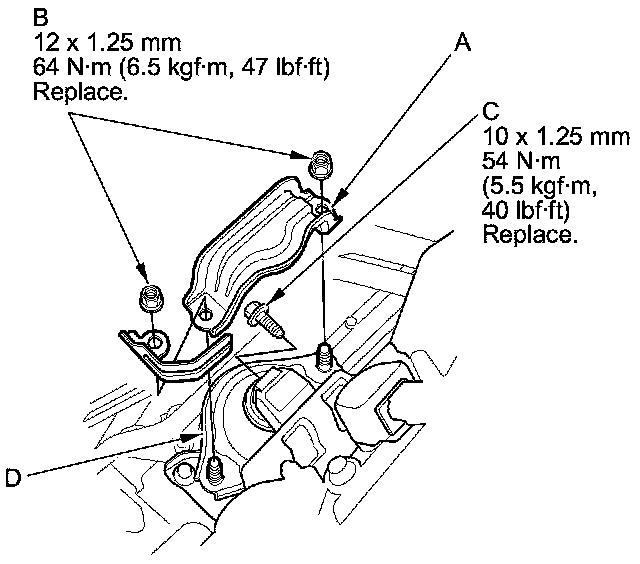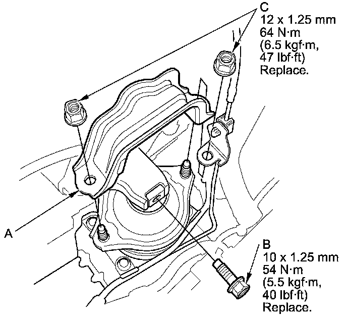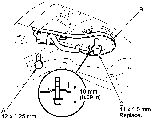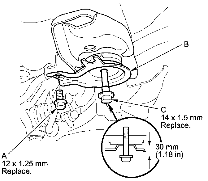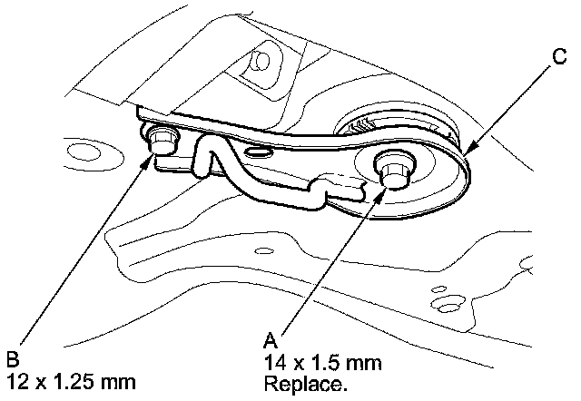 NOTE: Use new nuts (C) and a front engine mount bolt during reassembly.