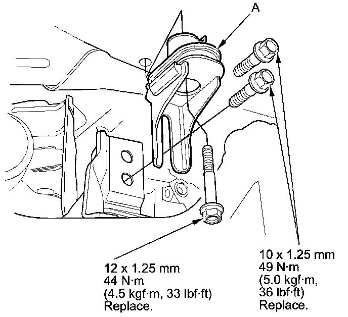 NOTE: Use a new rear engine mount bolt during reassembly.