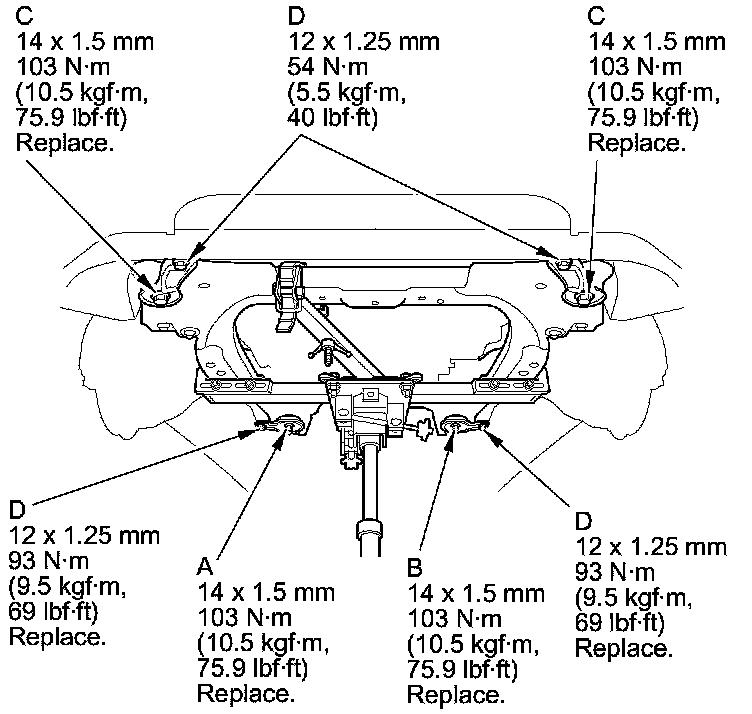 NOTE: Check all of the subframe mounting bolts, and retighten if necessary.