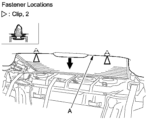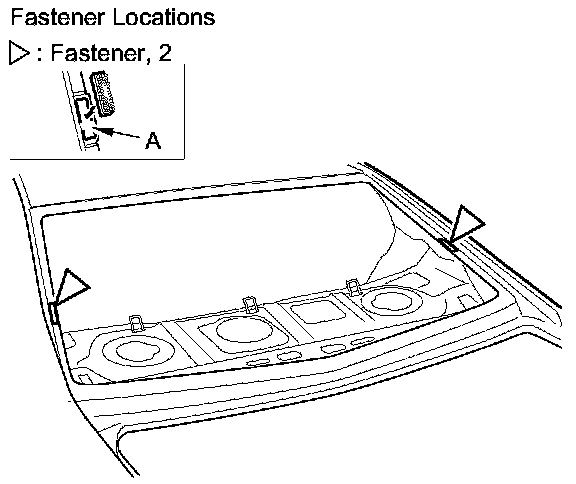 4. Pull down the rear area of the headliner (A) by detaching the clips.