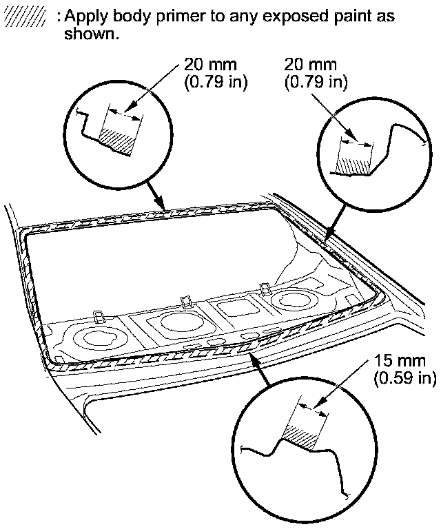 - Do not apply body primer to the rear window, and do not mix up the body and glass primer applicators.