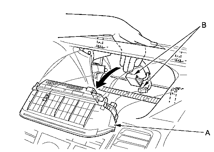 3. Disconnect the connectors (B), and remove the navigation display unit.
