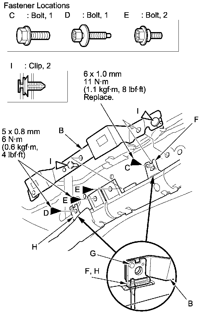 3. Repeat the preceding step at the rear tab plate (H) area to detach the plate from the bracket.