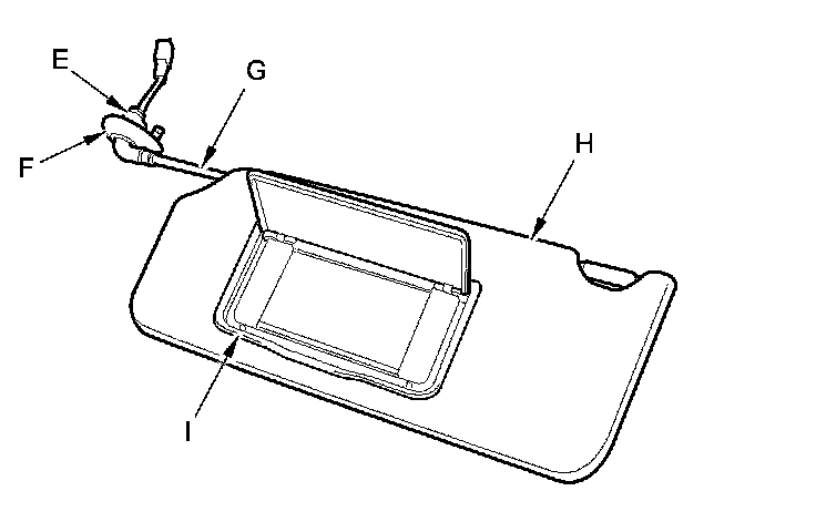 - Any bends or cracks in the sunvisor stay shaft (G)