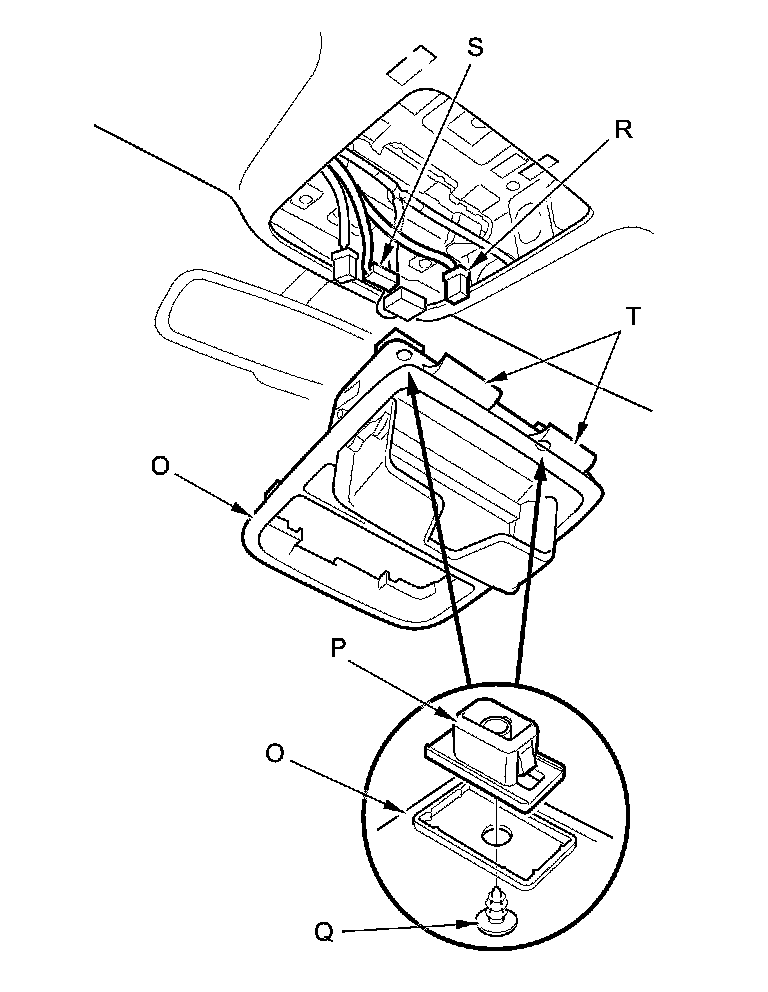 - Install the roof console screw grommets (P) on the console with the screws (Q).