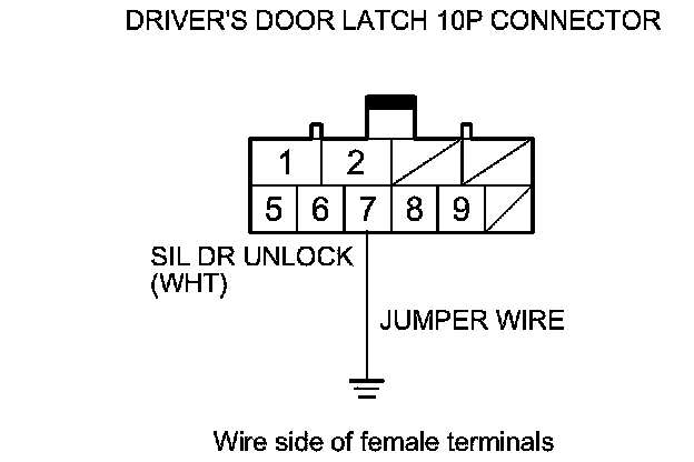 9. Connect driver's door latch 10P connector terminal No. 7 and body ground with a jumper wire.