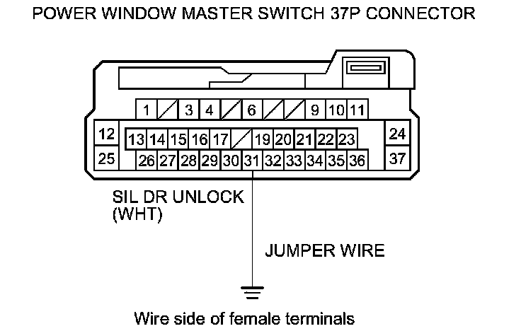 12. Connect power window master switch 37P connector terminal No. 31 and body ground with a jumper wire.