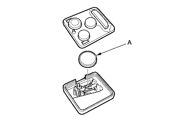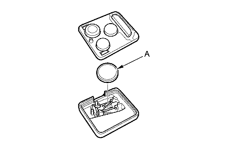 4. Replace the transmitter battery (A) with a new one (CR1616), and try to lock and unlock the doors with the transmitter by pressing the lock or unlock button five or six times.